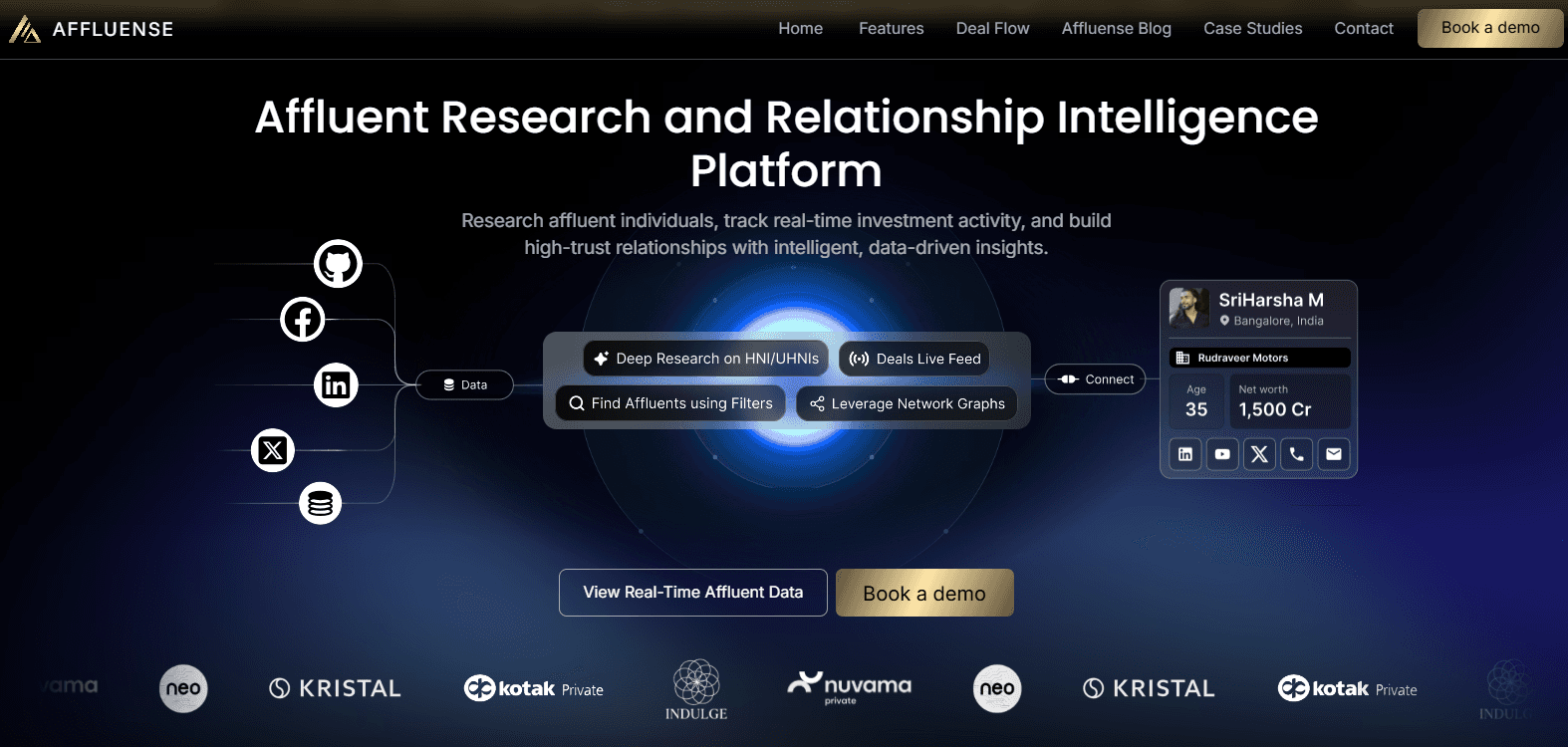 Affluense focuses on wealth signals - tracking liquidity events, investable assets, and warm introduction paths.