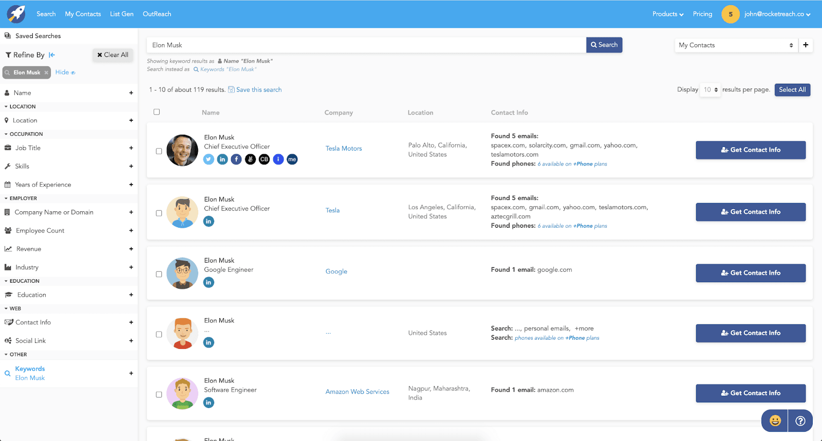 With over 900 million members, it has the largest professional network database. You can filter by location, company, seniority, and industry. It shows job changes and company news in real-time.