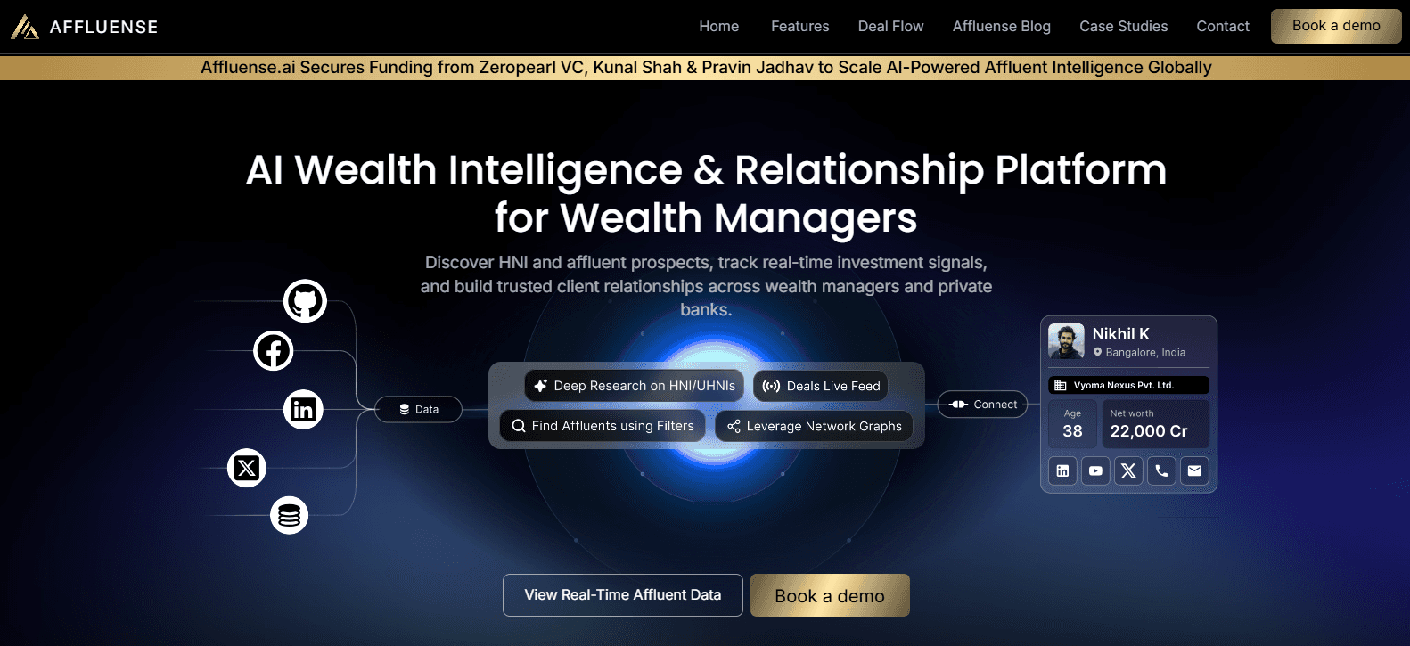 Best for: Wealth management firms, IFAs, RMs, BDRs, and KAMs who need verified Indian HNI contacts and real-time liquidity signals.
